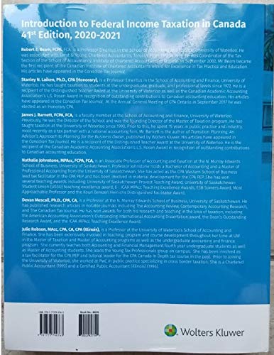 Introduction To Federal Income Taxation In Canada 41st Edition 2020 2021 With Study Guide Robert E Beam Stanley N Laiken James J Barnett 9781773790763 Accounting Amazon Canada