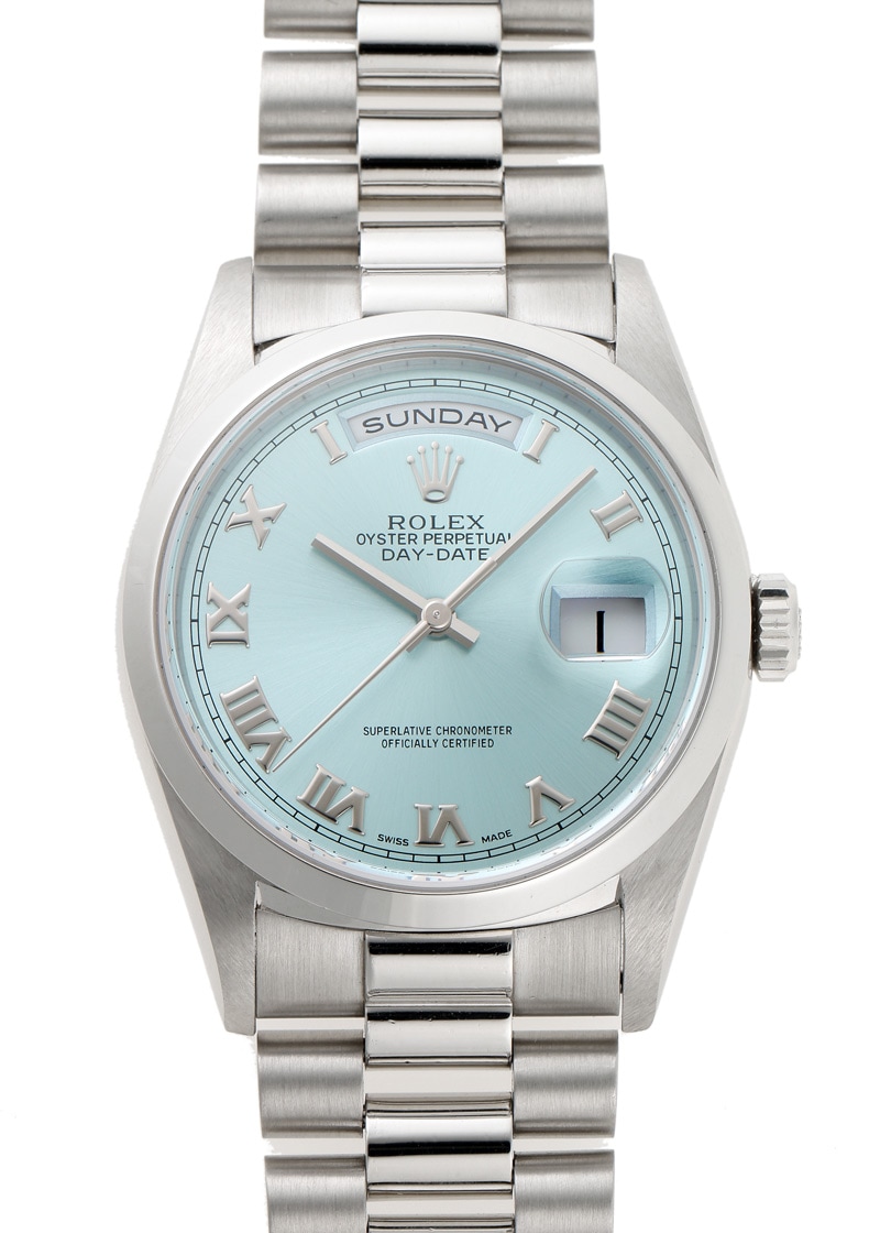 Used Watch 中古品 ロレックス オイスターパーペチュアル デイデイト Rolex 18206 Pt アイスブルー文字盤 自動巻き ブレスレット 中古 高級ブランド時計の販売 通販なら表参道 南青山クロンヌ Couronne